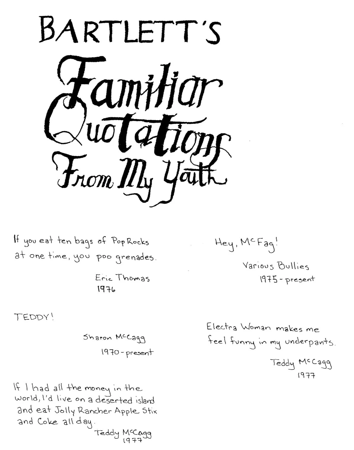 "Ted McCagg is a truly original thinker who really makes me laugh. And for that, I hate him." -Conan O'Brien